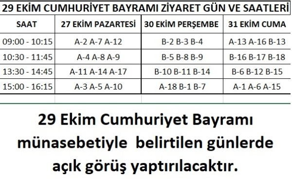 ZİYARET GÜN VE SAATLERİ Bir Daha Gösterme x