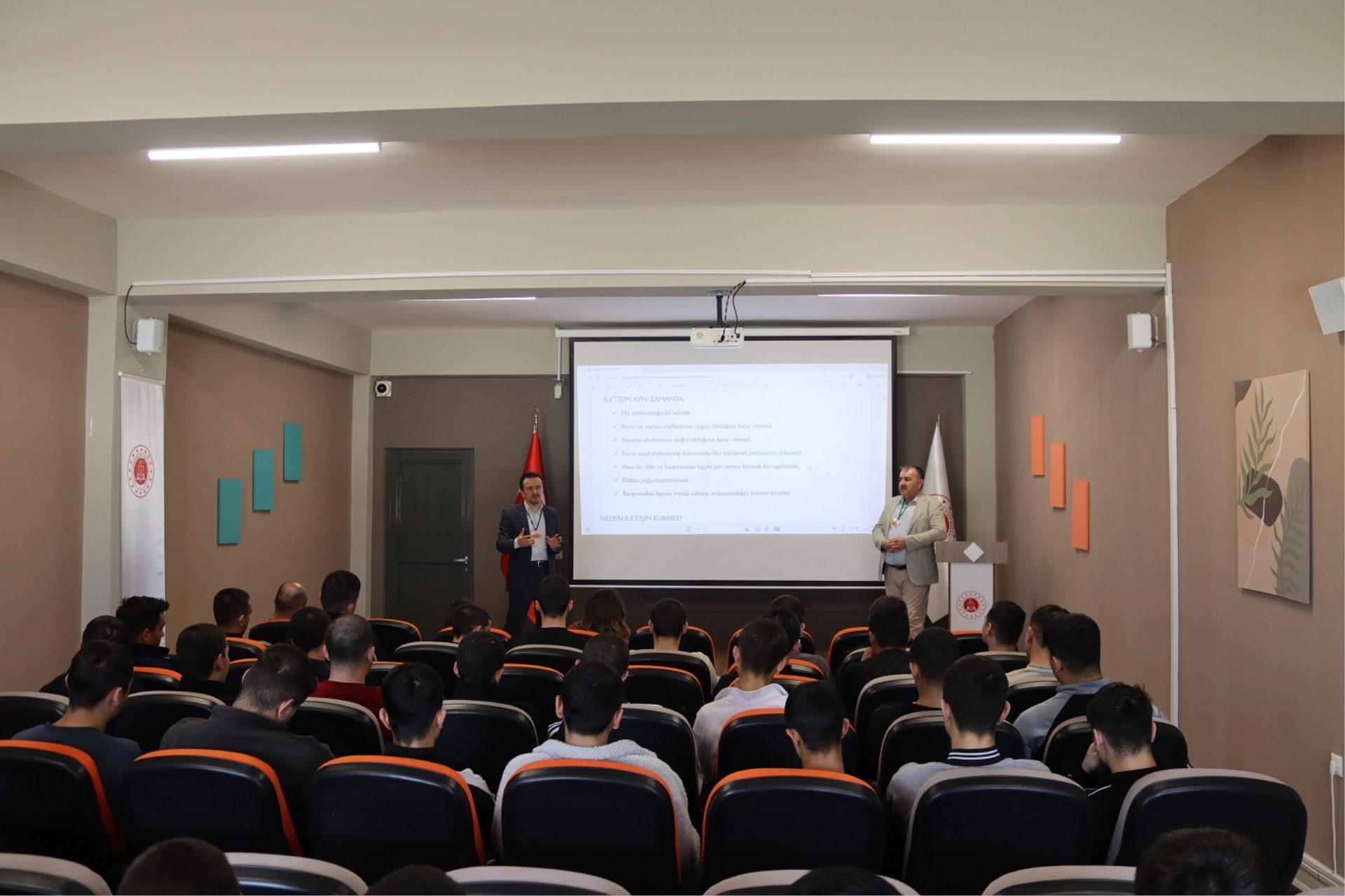 Kavak Çocuk ve Gençlik Kapalı Ceza İnfaz Kurumumuzda, Kavak İlçe Milli Eğitim Müdürlüğünden görevlendirilen öğretmenler Mustafa Hilmi Alpaslan ve Deniz Akbulut tarafından “Etkili İletişim ve Empati” konulu konferans düzenlendi. Barış Manço Konferans Salonu’nda düzenlenen konferansta sağlıklı iletişimin temelleri, doğru iletişiminin kişiler arası ilişkilere etkisi ve iletişimde empatinin önemi üzerinde duruldu. Konferansın ardından konuşmacılara, günün anısına hediye takdim edildi.